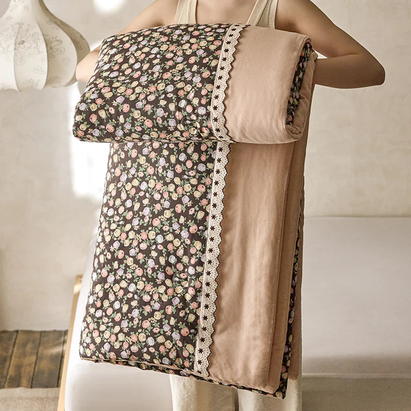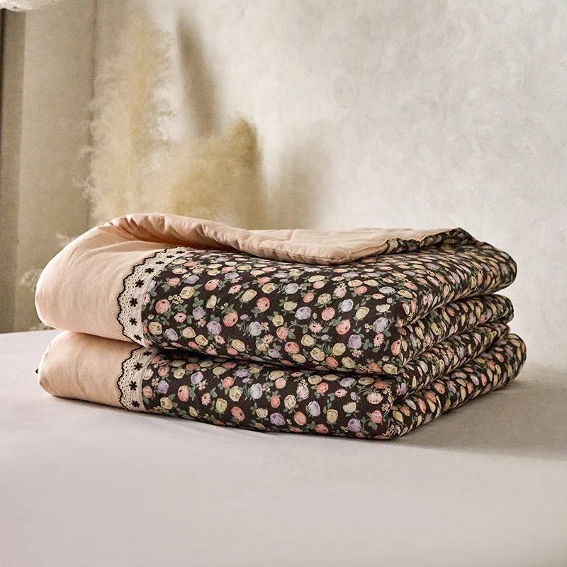 100% Pima Cotton Retro French Toile Shabby Flowers Applique Comforter Without Pillow Cases