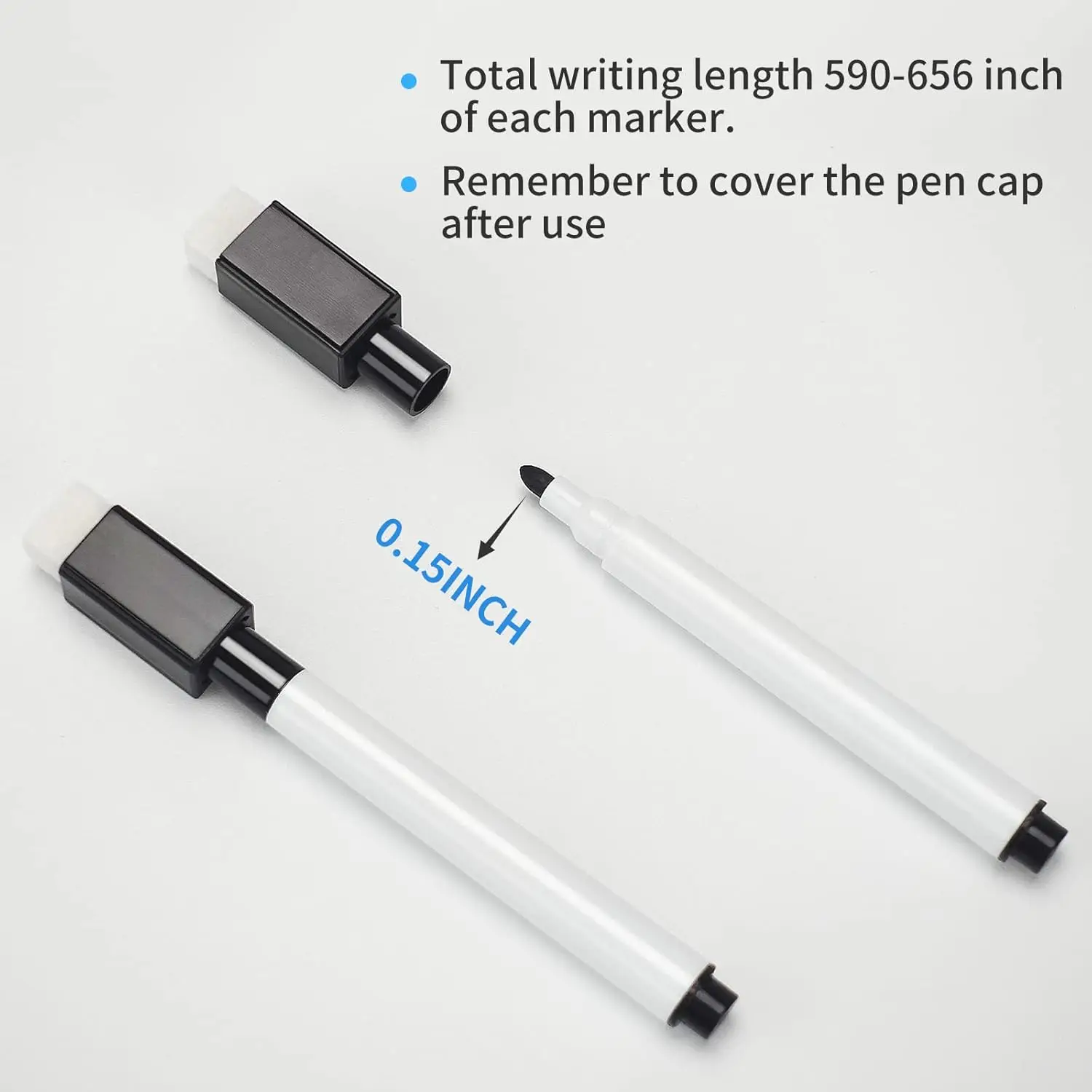 Each marker comes with an eraser cap, providing convenience and ease of use for teachers and students alike.