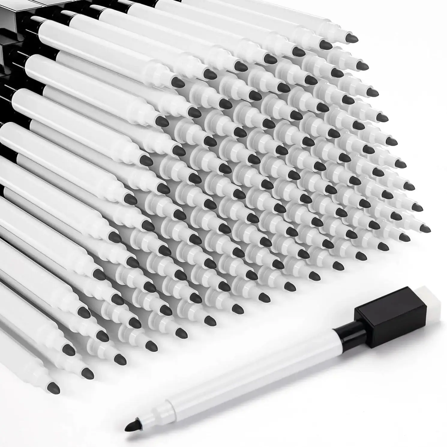 100Pcs Whiteboard Marker Pens Fine Point Tip with Eraser Cap Mini Bulk Black Dry Erase Markers for Teachers School