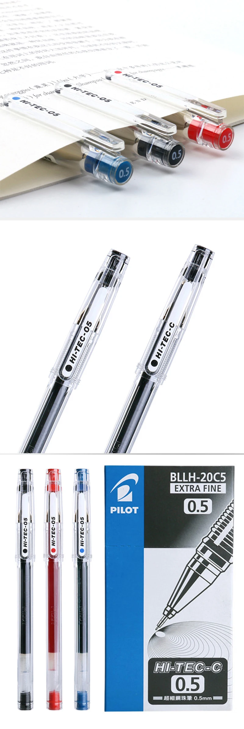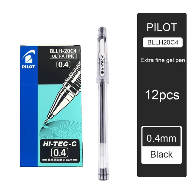 12pcs/Box Pilot HI-TEC Gel Pen Set 0.25/0.3/0.4/0.5mm Fine Point Ballpoint Pen Needle Neutral Gel Ink Black,Blue,Red BLLH-20C4