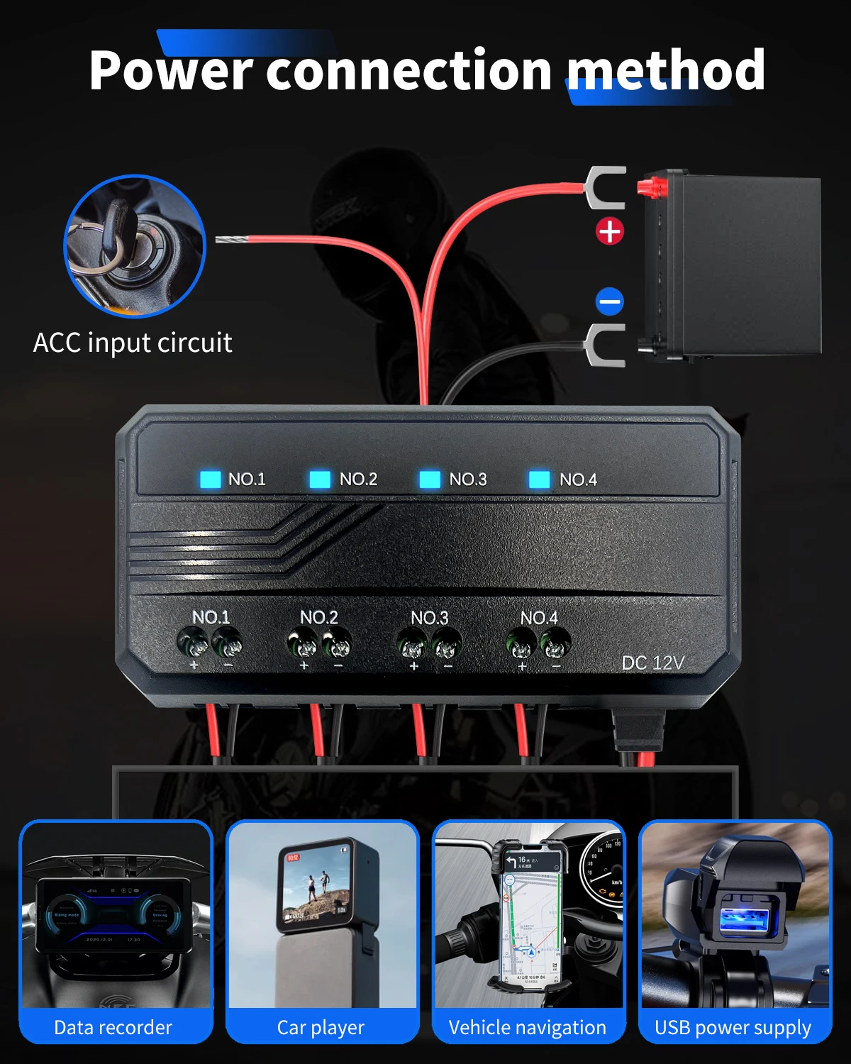 Installation range: Can be installed on motorcycles, cars, and 12V appliances in the car.