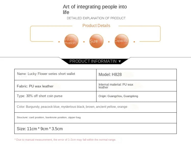 Internal structure of small package: Zipper compartment, photo compartment, large banknote folder, card com